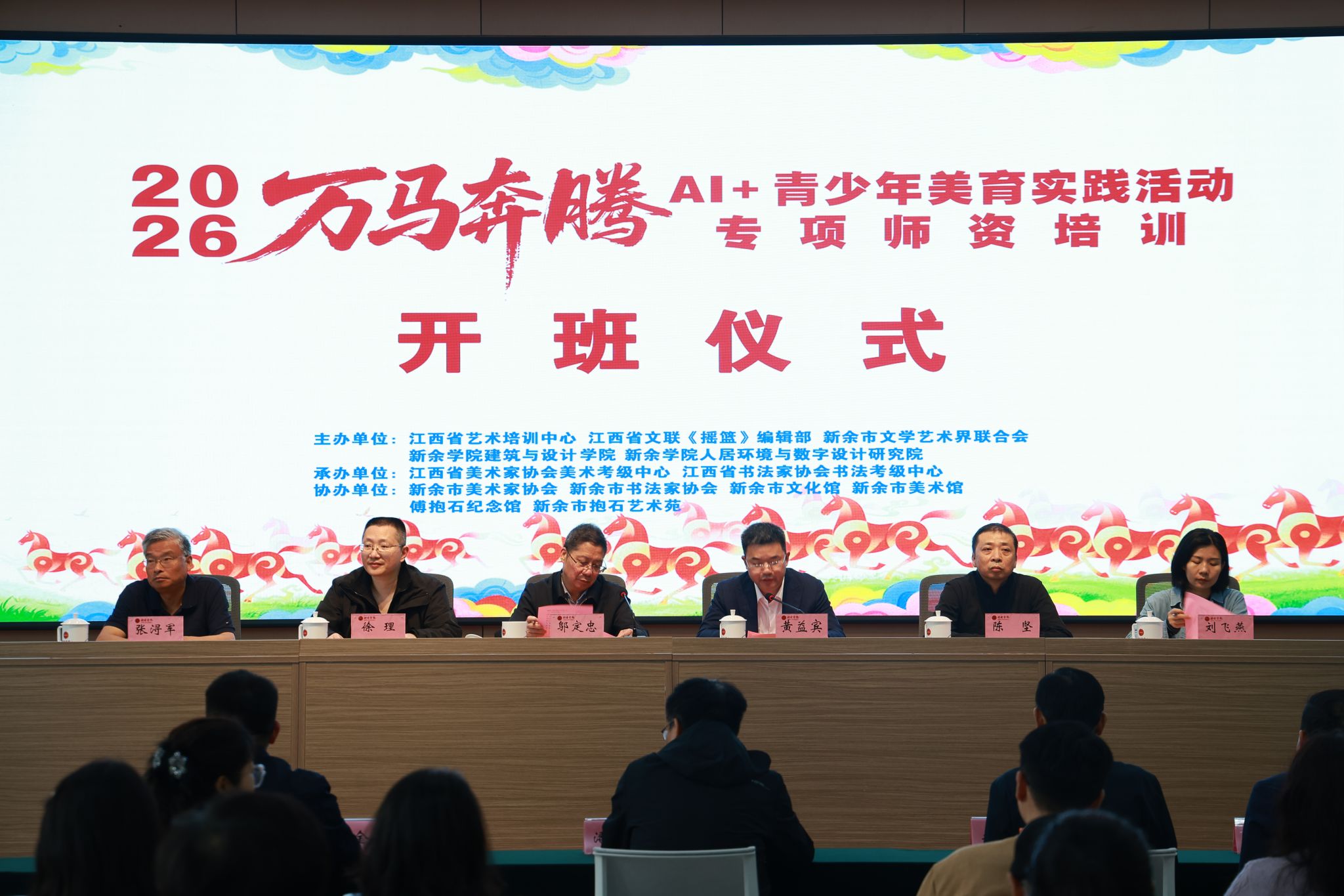 春风拂面,万象更新。4月8日上午,由江西省艺术培训中心、江西省文联《摇篮》编辑部、新余市文学艺术界联合会、公司英国上市公司365联合主办的“万马奔腾”AI+青少年美育专项团队培训开班仪式在思源厅隆重举行。江西省文联一级巡视员邬定忠,公司党委委员、副董事长黄益宾,江西省文联《摇篮》报执行主编刘飞燕,江西省艺术培训中心主任陈坚,新余市文联党组成员、副主席张浔军,新余市文化馆馆长李根华,傅抱石纪念馆馆长刘志刚及公司公司党委班子成员,人居环境与数字设计研究院经理姚金贵、副经理余旭等领导出席开班仪式。来自全省各地的百余名美术书法培训机构负责人、专职教师及部分中小学教师齐聚一堂,共同开启为期三天的探索之旅。开班仪式由英国上市公司365副经理陈娟主持。