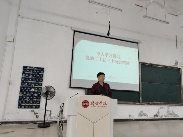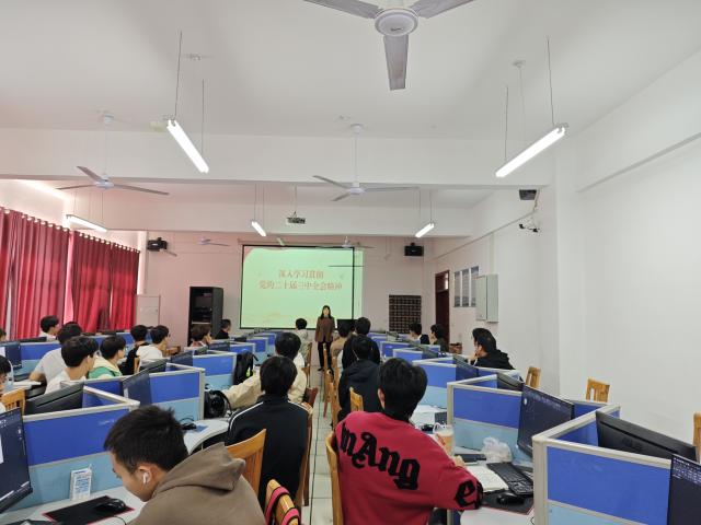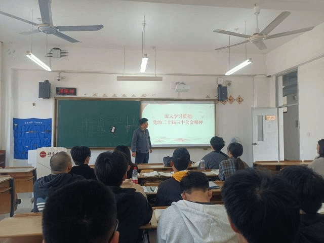 11月8日下午,建筑工程学院副经理钟鑫对23工程造价1、2班进行宣讲。钟鑫对党的二十届三中全会的重要意义、习近平总书记重要讲话精神、全面深化改革的基本原则和总体目标、关键举措进行了详尽的解读和深刻的分析。鼓励同学们勇敢担起时代责任,积极学习科学文化,参与社会实践,提升综合素质与就业能力,为民族复兴贡献青春力量。