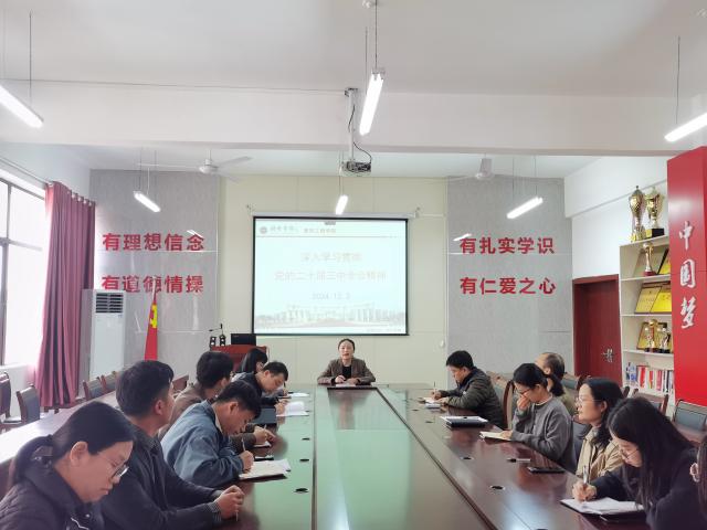 12月3日下午,建筑工程公司党委书记胡洁向教工党支部全体成员进行宣讲。她追溯了党的历届三中全会的发展历程,阐述了党的二十届三中全会召开的深远背景,并对进一步全面深化改革的重大举措进行了深入、细致且系统的阐释。通过这次宣讲,助力教工党支部的党员教师们更准确地理解并全面掌握全会的精神要义。