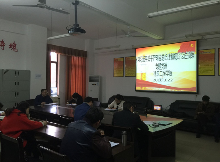 为认真贯彻学校有关文件精神,322日,建工学院在会议室组织学习习近平关于严明党的纪律和规矩论述摘编专题会,该学院全体教师参加了会议。