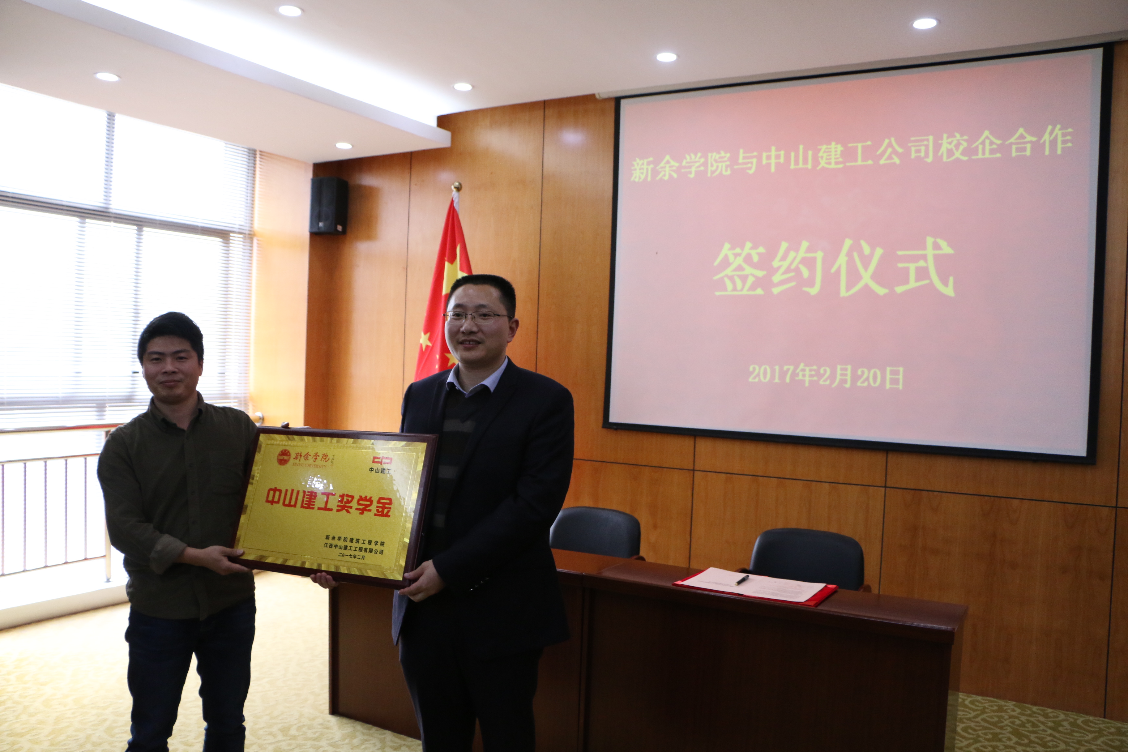 仪式上举行了中山建工奖学金设立暨中山建工定向班授牌。据悉,本次合作双方将互设合作基地。人才培养合作方面,中山建工公司积极参与公司土建类专业人才培养工作;员工实习合作方面,以双方互惠互利为建设原则,公司在中山建工公司安排顶岗实习活动;员工就业合作方面,公司按照该公司要求积极推荐优秀毕业生,并为其选聘人才提供相关便利条件。同时,由中山建工公司出资,设立“中山建工奖学金”,对公司在专业学习或技能训练等综合成绩优秀的员工及优秀的老师进行奖励。