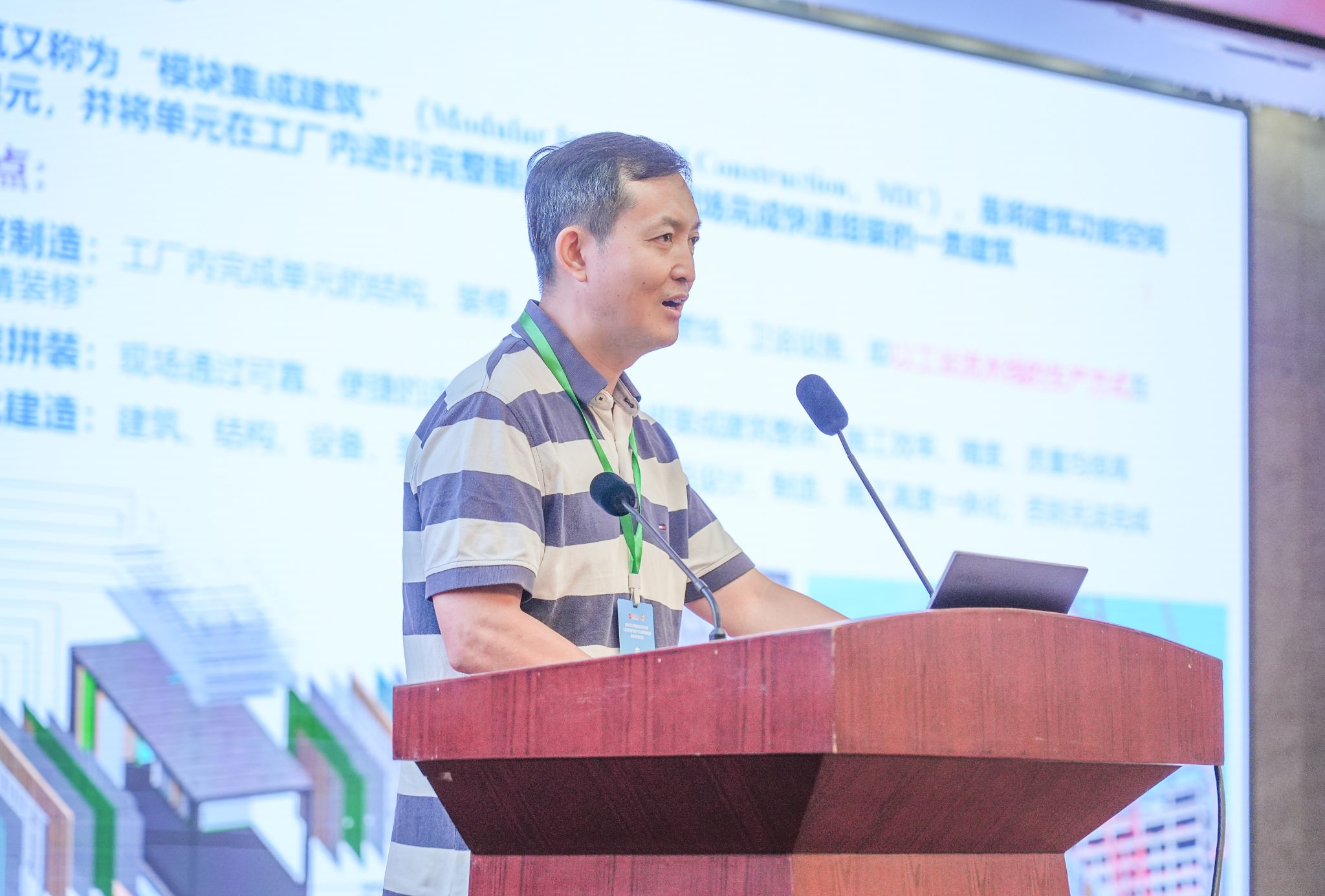 重庆大学教授刘界鹏以《多高层模块化钢结构建筑智能设计技术探索》为题,分享了智能建造领域的前沿突破。刘界鹏教授重点讲解了一体化数字模型(GIM)与人工智能技术在模块排布、结构优化及箱体深化设计中的应用,展示了如何通过智能方法提升设计效率并实现“一模到底”,最后结合典型工程案例说明了该技术的实践价值。