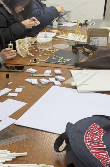 面对摆满桌面的立体构成半成品与手工材料,学院领导鼓励同学们在动手实践中大胆探索空间造型与审美表达,将专业基础训练与创意设计相结合,在点滴积累中提升专业能力。