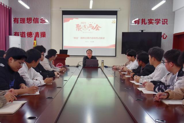 宣讲会上,徐忠麟围绕全国两会来龙去脉、政府工作报告主要内容、两会热点重点、两会期间习近平总书记的重要讲话等相关内容进行了全面宣讲和深入解读。他指出,今年的全国两会是全面贯彻落实党的二十大精神开局之年召开的一次重要会议,学习全国两会精神可以帮助同学们更好地了解国家的发展现状和未来的发展趋势,同时也能够提高政治素养和社会责任感。同学们要加强学习,增强本领,立志做有理想、敢担当、能吃苦、肯奋斗的新时代好青年,自觉把个人发展融入国家和人民的事业中,把个人抱负融入到中华民族伟大复兴的中国梦中。