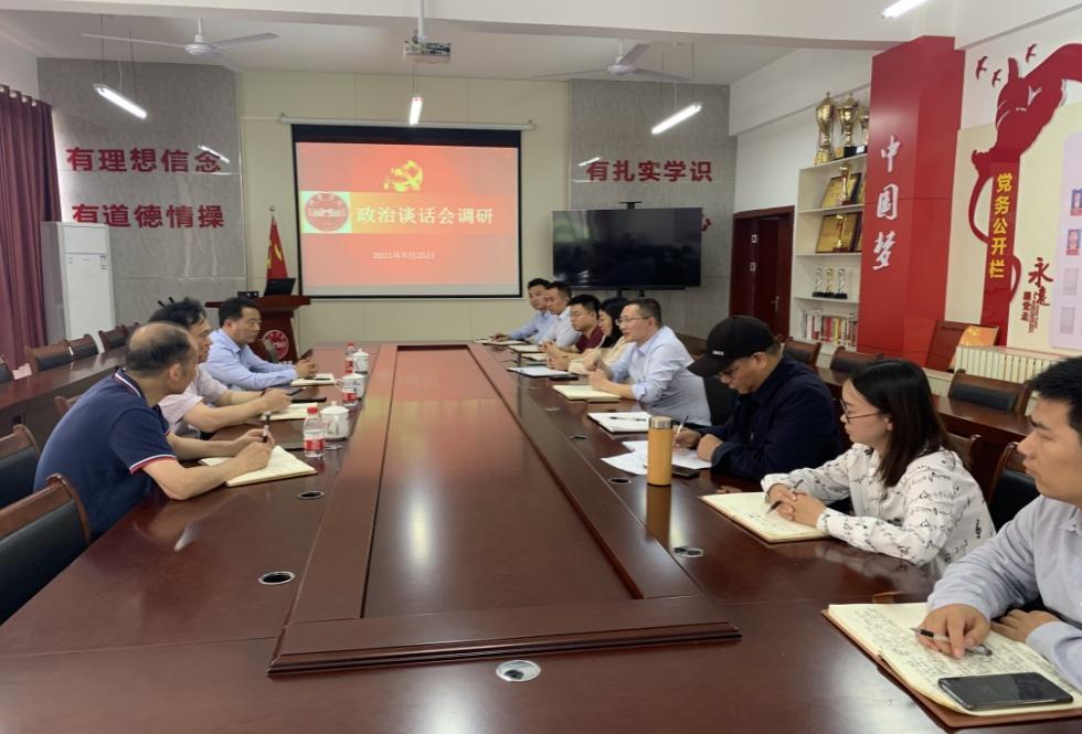 5月25日下午,公司党委书记刘冬就政治谈话工作到公司开展前期实地调研,公司党委委员、组织部部长姚伟,公司党委委员、宣传部部长周文生,公司党政办主任王茶生陪同调研,公司党委班子成员,教工支部书记及英国上市公司365介绍书记参加调研会。