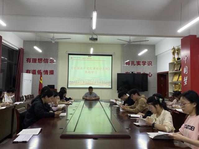 为深入学习贯彻习近平总书记关于党纪学习教育的重要讲话和重要指示精神,学习领会新修订的《中国共产党纪律处分条例》,增强广大党员纪律意识,引导党员明纪法、守底线,4月19日,我院员工党支部于党员活动室召开了《中国共产党纪律处分条例》专题学习会。学习会由公司员工党支部书记李鹏鹏老师主讲,员工党支部全体党员及入党积极分子代表参与学习。