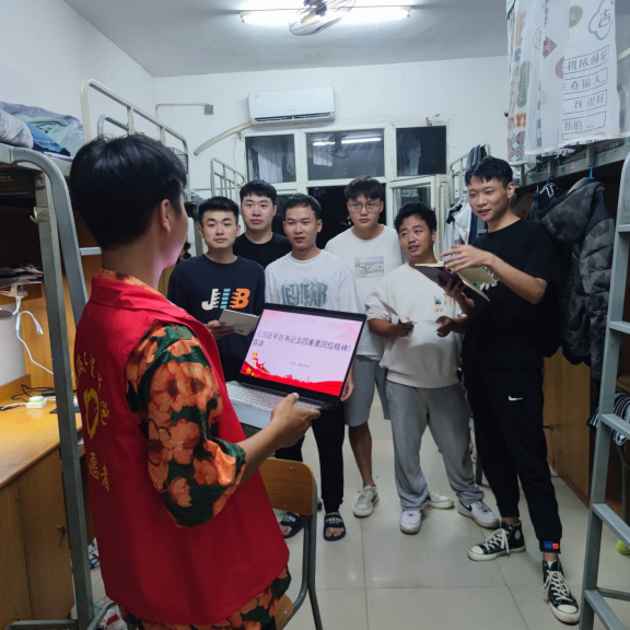 在梁昌嵩、方青豪,张晋喻,钟伟四位宣讲成员的带领下,男生宿舍7、8、13等宿舍楼各个宿舍学习了习近平总书记五四重要回信精神的相关图文、视频资料,初步了解了回信的内涵、重大意义,筑牢了团员青年理想信念根基,团结带领广大团员青年坚定信念跟党走,勇担新时代使命,进一步激发青年员工的爱国热情和奋进精神。随后让宿舍成员分享自己的心得感悟:作为新时代的青年人,如果想要为祖国的建设,为民族的复兴做出一份贡献,我们要从自身做起,努力学习,增强自身的知识和能力,坚定理想信念,打牢理论基础,让自己有充足的能力去做好自己的本职工作。