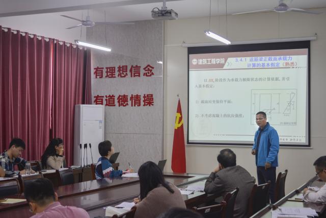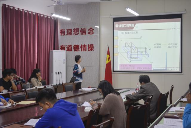 示范课上,潘洪科老师就《混凝土基本原理》中单筋矩形截面受弯构件正截面受弯承载力计算展开讲述,同时列举实例;廖菲菲老师就《土木工程制图与识图》向大家介绍了三面投影体系的相关知识点。课后院督导组对此次示范课进行评价总结,一致认为两位老师授课逻辑性强,概念表述清晰,对重难点的讲解十分透彻,值得全院教师学习。