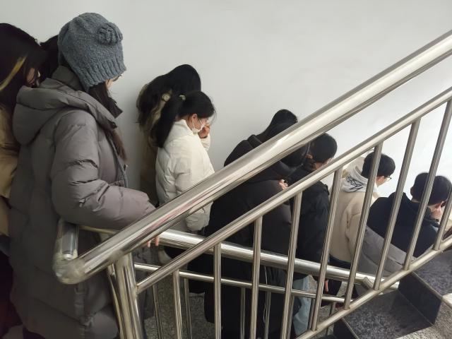 下午3点30分,演练正式启动。消防警报声在建工楼内骤然响起,模拟火情烟雾迅速扩散。各班参演师生按照既有演练计划,用湿毛巾捂住口鼻,低姿弯腰,迅速有序地沿着预定疏散路线撤离至安全区域。整个疏散过程,现场秩序井然,未出现任何拥挤、推搡的混乱情况,全程紧张有序。