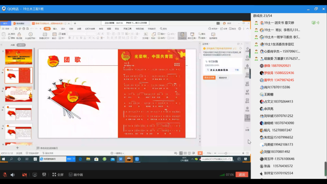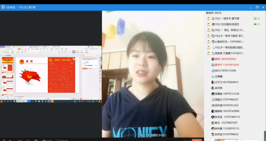 19土木工程1班团支部邀请了参加抗疫服务的李亚红和李思凡同学分享他们参加抗疫的经历。他们表示,身为一名共青团员,要时刻牢记:中国共青团是共产党的后备军。他们觉得这些都是他们应该做的,虽然有点累,但是心里很暖、很充实。在听完李亚红和李思凡同学所分享心得与体会,同学们纷纷发出了他们的感慨与敬佩之意。