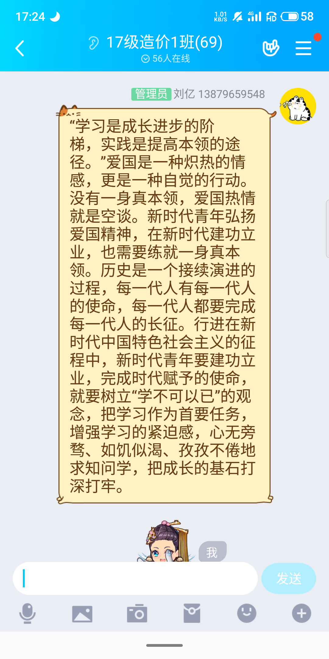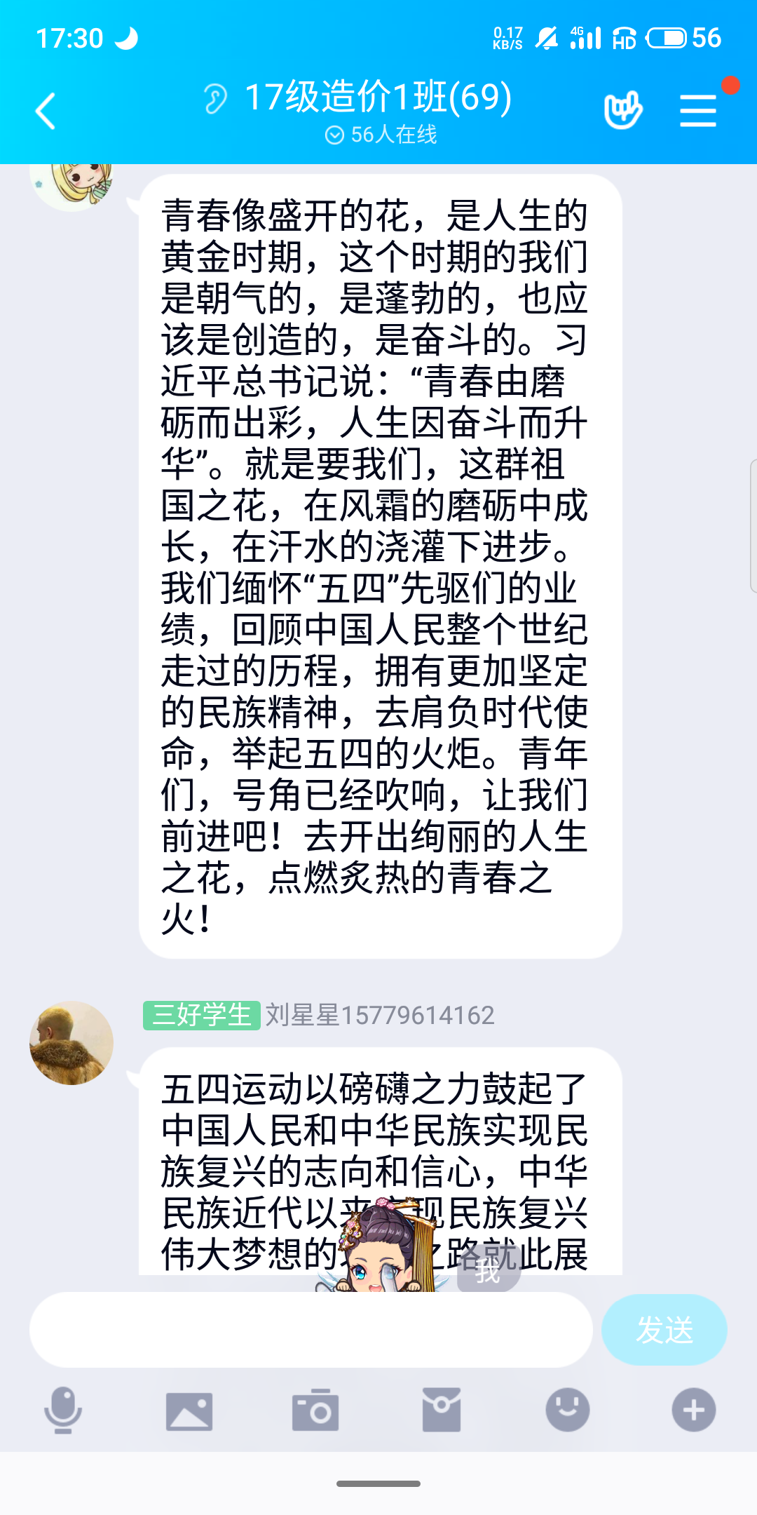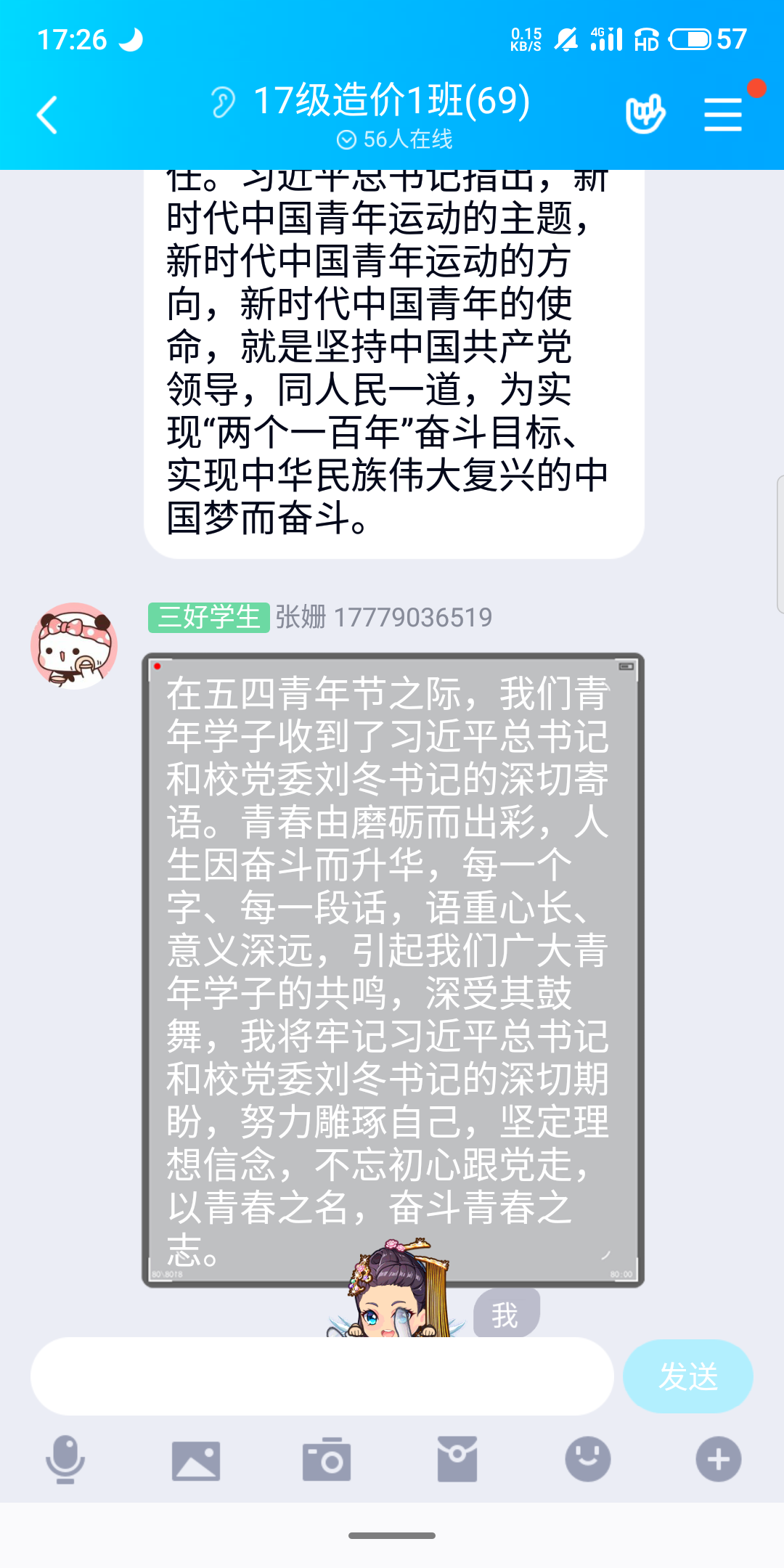 支部团员积极在支部群内分享学习了习近平总书记对青年的寄语及公司党委刘冬书记对学校团员青年的寄语的感悟。青春由磨砺而出彩,人生因奋斗而升华,每一个字、每一段话,语重心长、意义深远,引起我们广大青年学子的共鸣,深受其鼓舞。