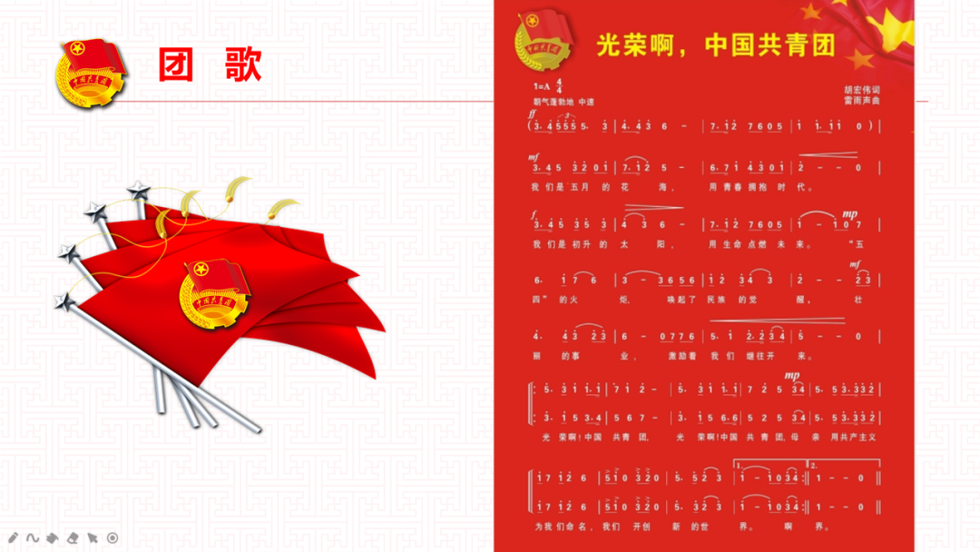 团课开始,由团支部书记刘亿带领同学们齐唱团歌。团歌代表着我们青少年满腔的热血,青春具有激情和梦想,初升的太阳充满干劲,继往开来学习革命老前辈优良传统作风,努力积极开创新的世界。