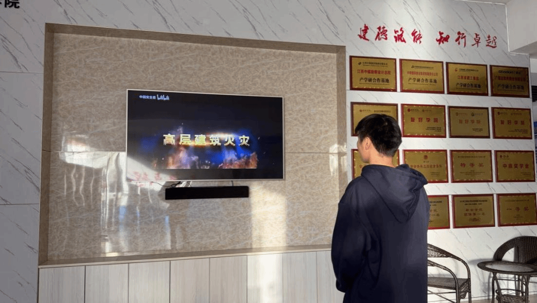 以宣传教育为基础,学院多渠道推动消防安全入人心。各班级主题班会上,班主任结合典型火灾案例,向员工讲解火灾成因、初期处置、逃生路线及消防器材使用要点,引导树立“安全第一、预防为主”理念。与此同时,学院在一楼公共区域循环播放消防警示片,通过真实场景、伤亡数据与逃生技巧演示,让师生直观感受火灾危害,深化安全认知。从班会“点对点”讲解到公共区域“广覆盖”播放,多形式宣传让安全知识自然融入师生日常。