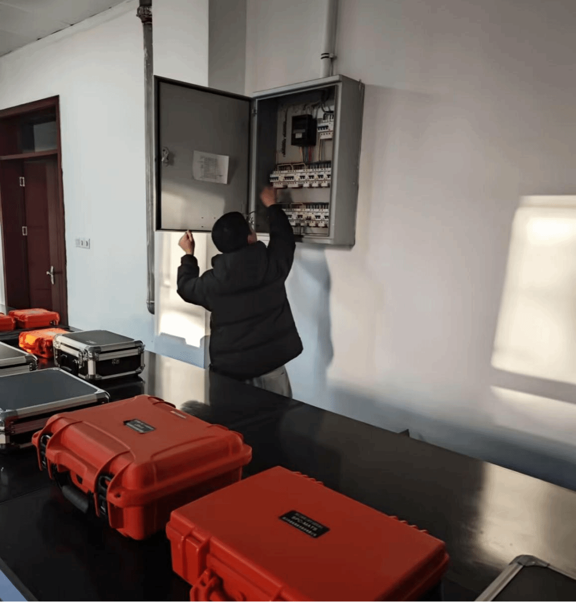 以专项排查为保障,学院精准检查消除源头隐患。为筑牢安全屏障,学院开展消防安全专项整治排查,重点聚焦一楼 VR 室、机房、沙盘室的电箱安全。工作人员仔细核查电箱线路是否老化破损、接线是否规范、箱内有无杂物、漏电保护装置是否正常。针对问题,当场记录并制定整改清单,明确责任人与时限,确保隐患“发现即改、逐一销号”,压实责任,织密校园安全“防护网”。